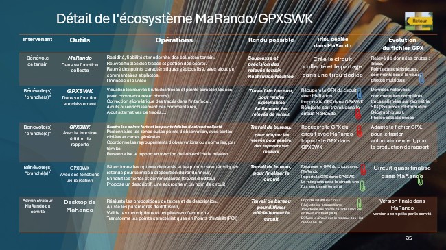 Aujourd’hui, MaRando® – grâce à sa fonction collecte – s’inscrit dans cette continuité. Initialement conçue pour accompagner le randonneur, elle permet aussi la collecte de données structurées : points géolocalisés, photos associées, remarques normalisées ou personnalisées, vérifications d’écarts de tracé…